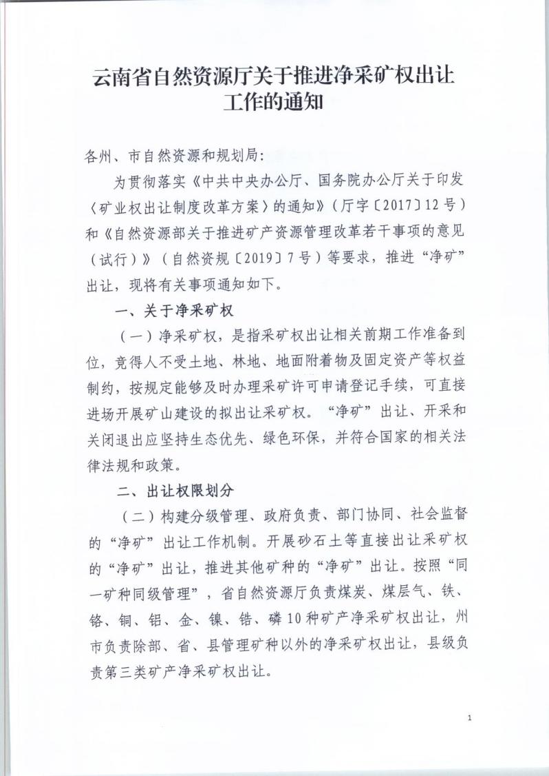 云南矿产资源管理改革若干事项的实施意见